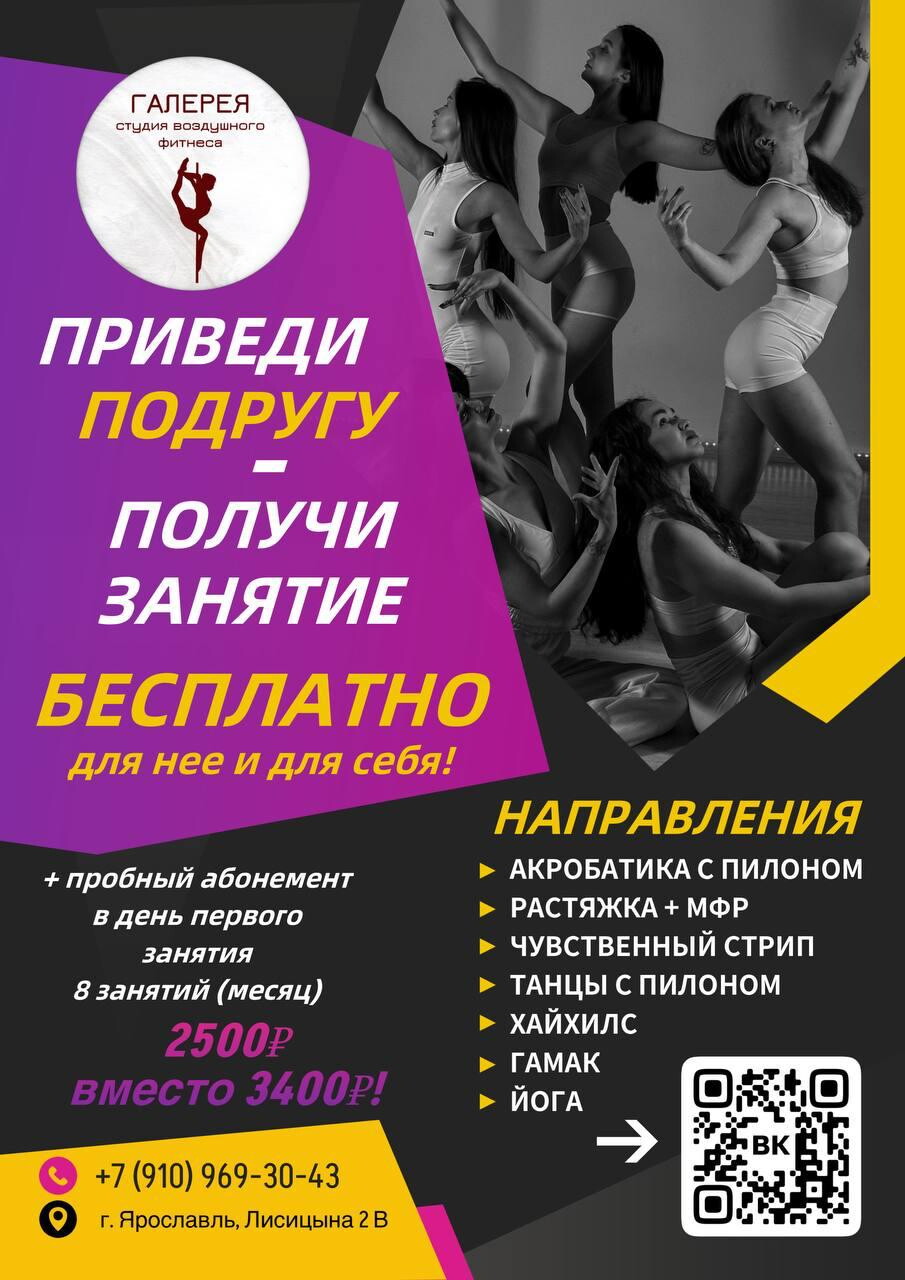 По поводу времени работы вы можете подробно узнать у сотрудников студии воздушного фитнеса Галерея. И обязательно обговорите с ними или вашим тренером важные нюансы разрешённой степени нагрузки. Мы хотим, чтобы вы были здоровыми и сильными!